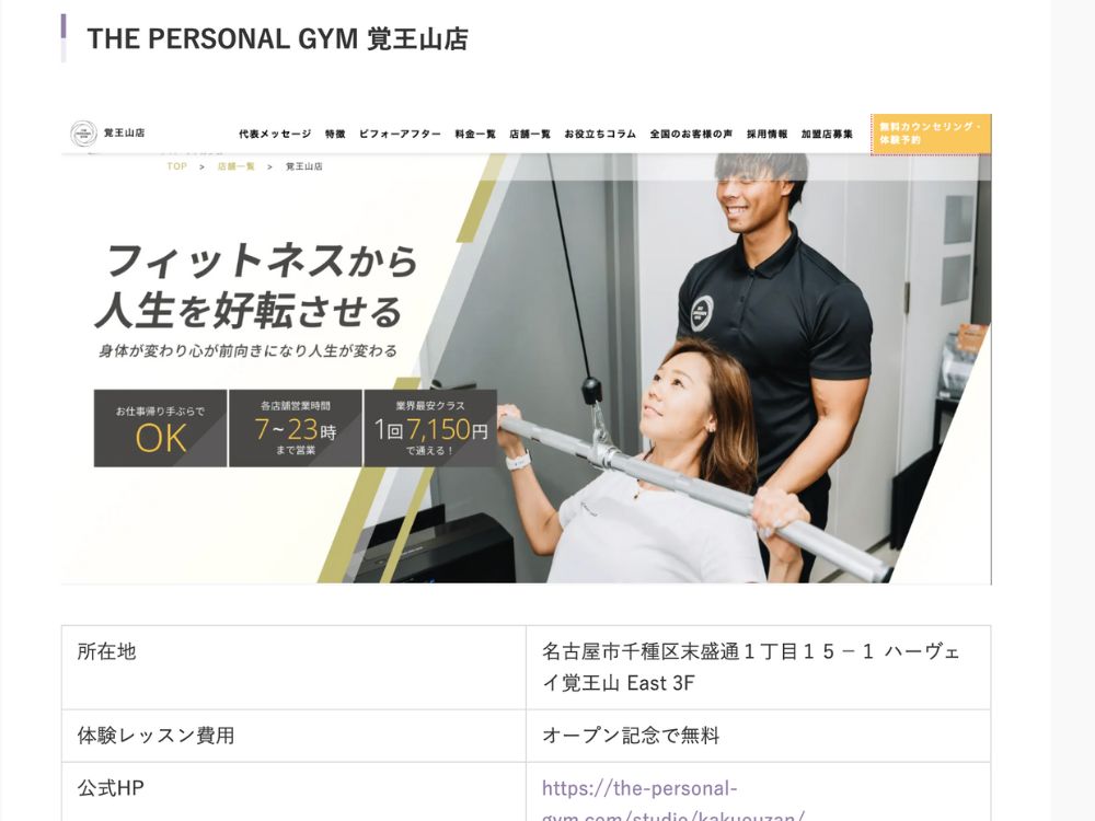 Prima様にTHE PERSONAL GYM覚王山店が紹介され···